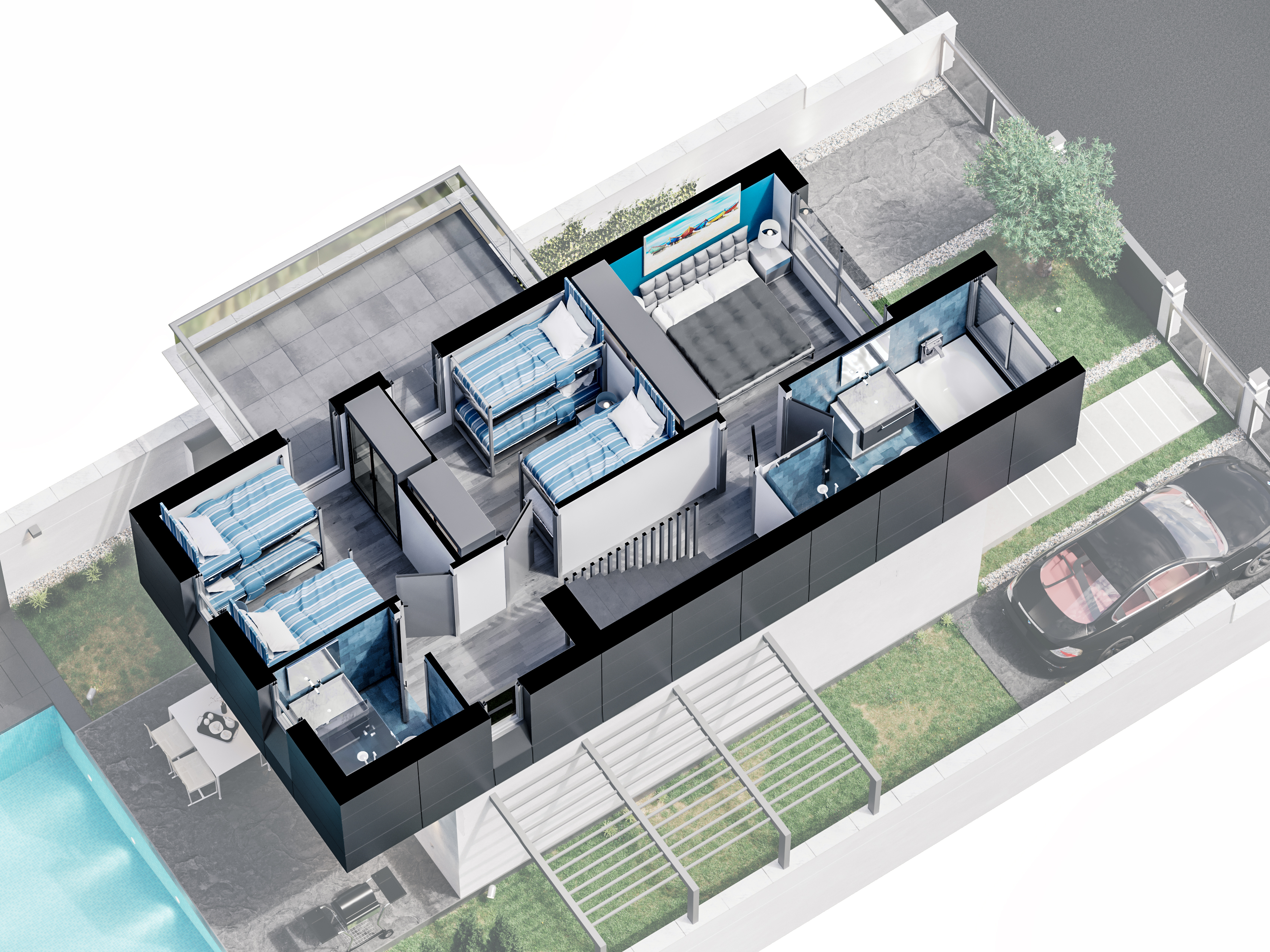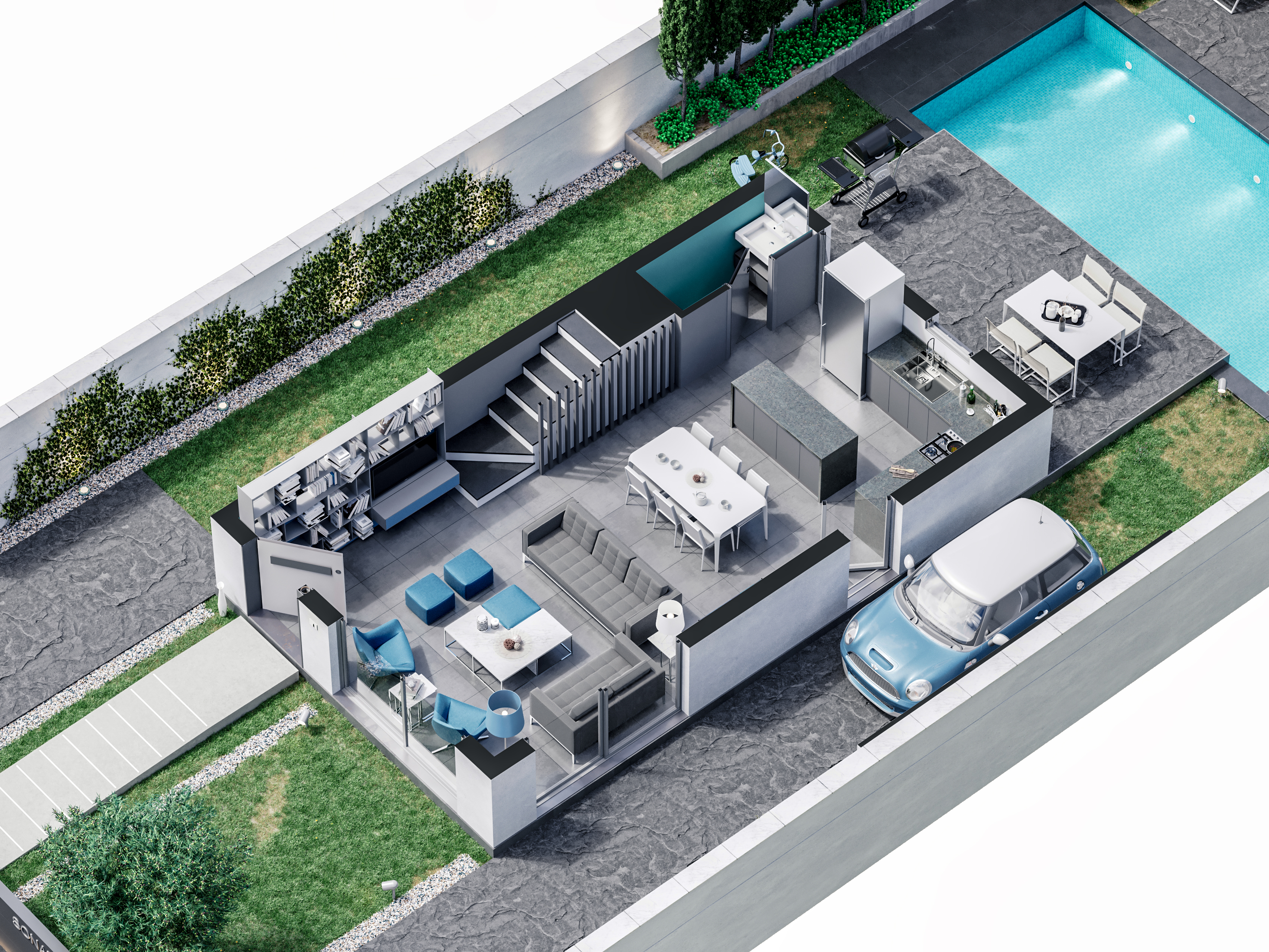 AXO project gave us the opportunity to work on a house from start to finish, designing internal spaces, furniture and colors to provide an ideal solution.